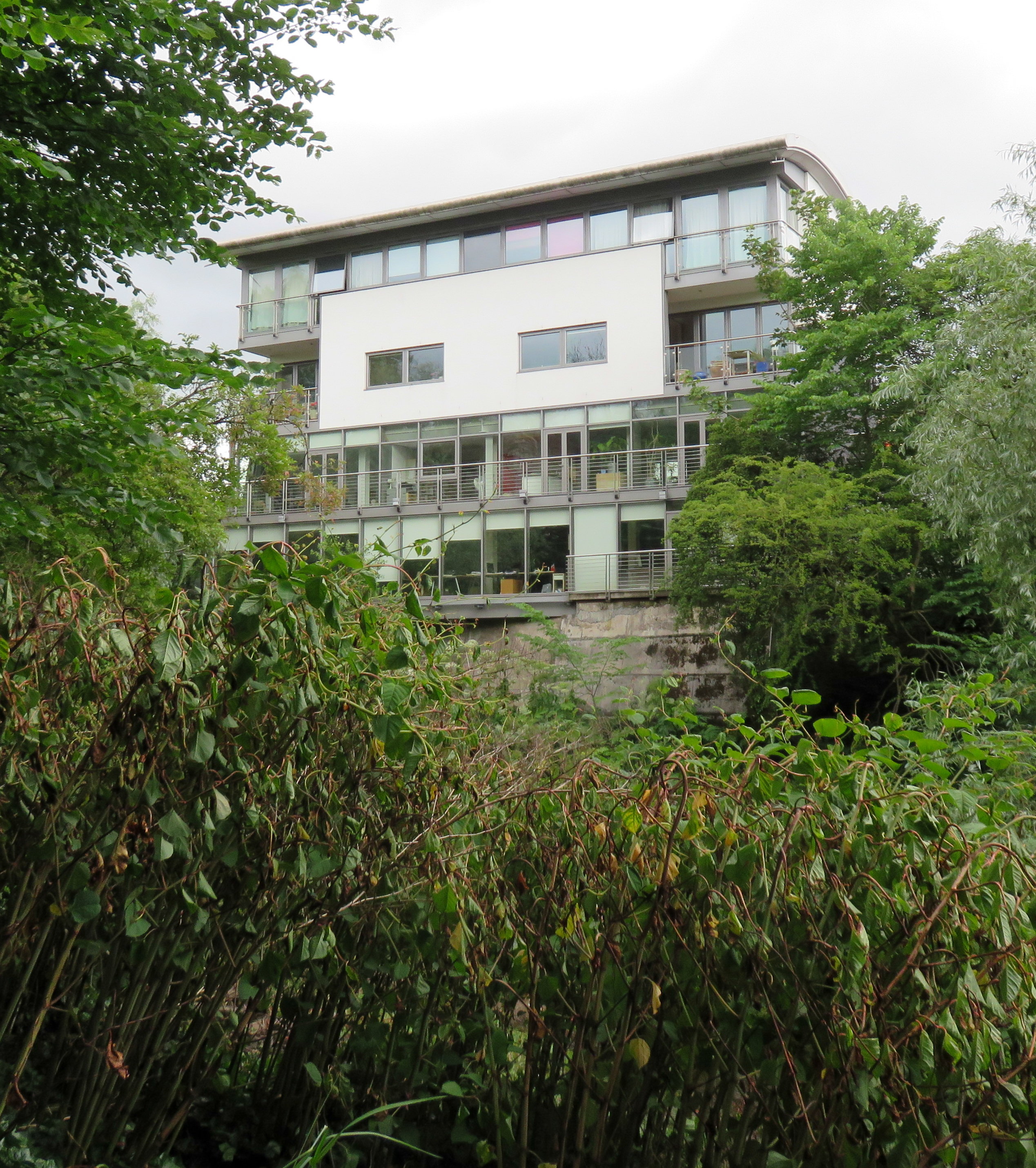 The next stretch is quieter but still has walkers and cyclists regularly passing. On the opposite bank we see a well designed building which seems to incorporate an office and living quarters. The building ins nicely set into the bank and gives a beautiful, peaceful outlook. I’m not sure how you would get much work done looking out over the river.