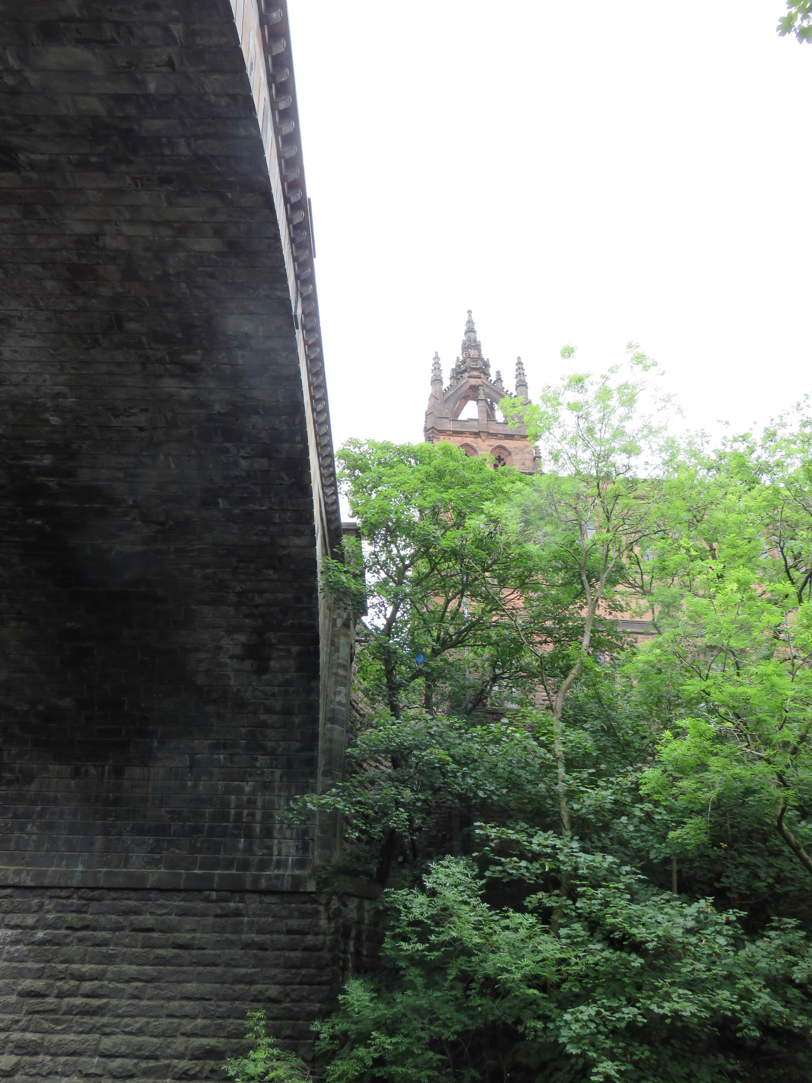 Soon we are heading up to the bridge at Queen Margaret Drive where once the BBC broadcast to the nation. we pass under anothe beautivul arch and come to the iron bridge that takes us out of the River Walk and escape to the Botanic Gardens.